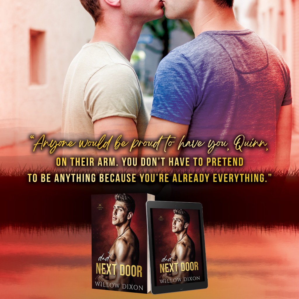 Quinn and Tristan’s story is a best friends-to-lovers, bi-awakening romance between a retired porn model who just moved into his first home, and a single dad trying to navigate life after divorce. Expect a fake relationship, an age gap, found family, mental health rep, lots of spice, and all the feels as these neighbors find out that sometimes opposites really do attract.