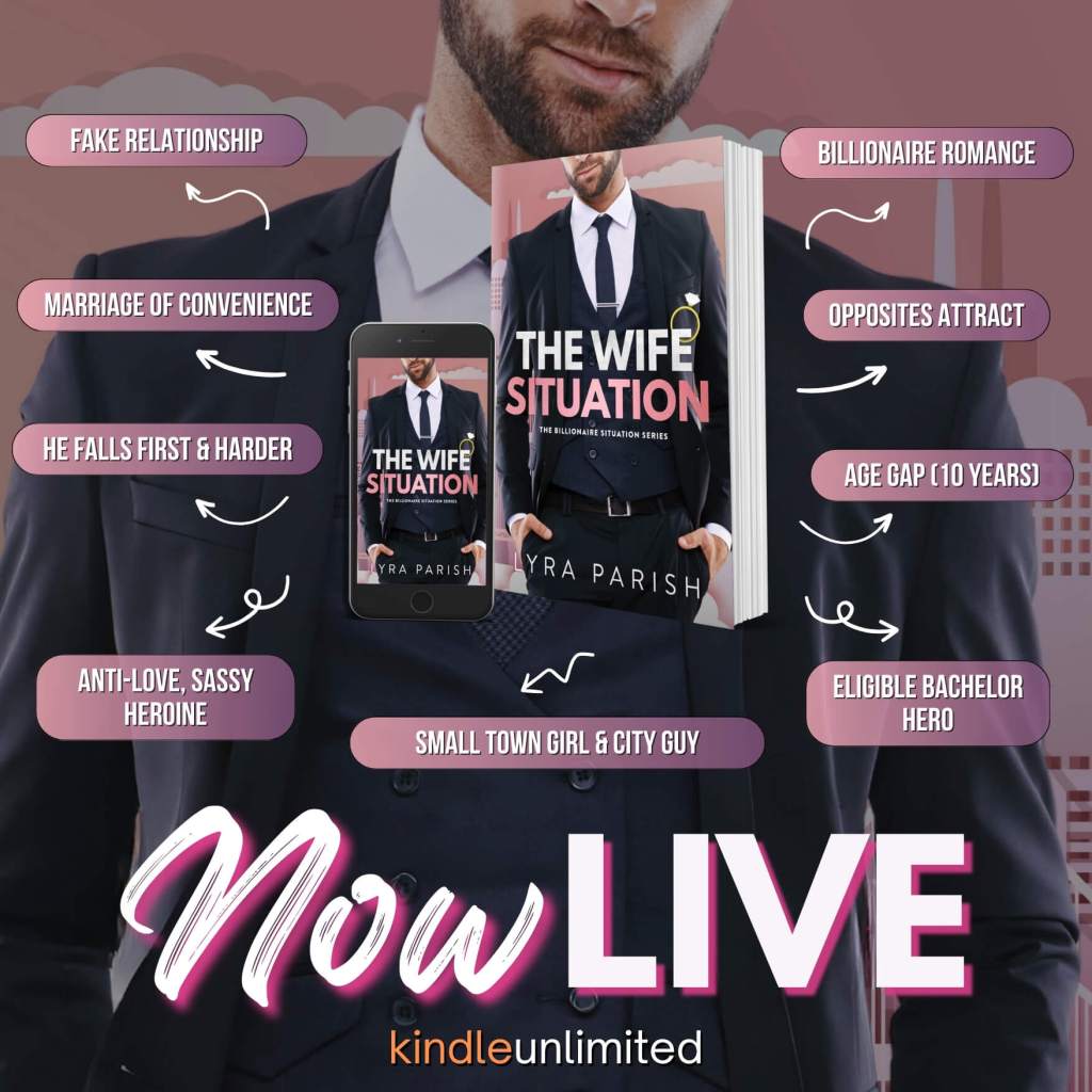 The Wife Situation is a billionaire, age gap, marriage of convenience romance with a happily ever after! It’s a stand-alone with open-door scenes. Included: a rich AF hero who’s a professional on the streets, but a bad boy in the sheets and isn’t afraid to call his little heartbreaker my wife.